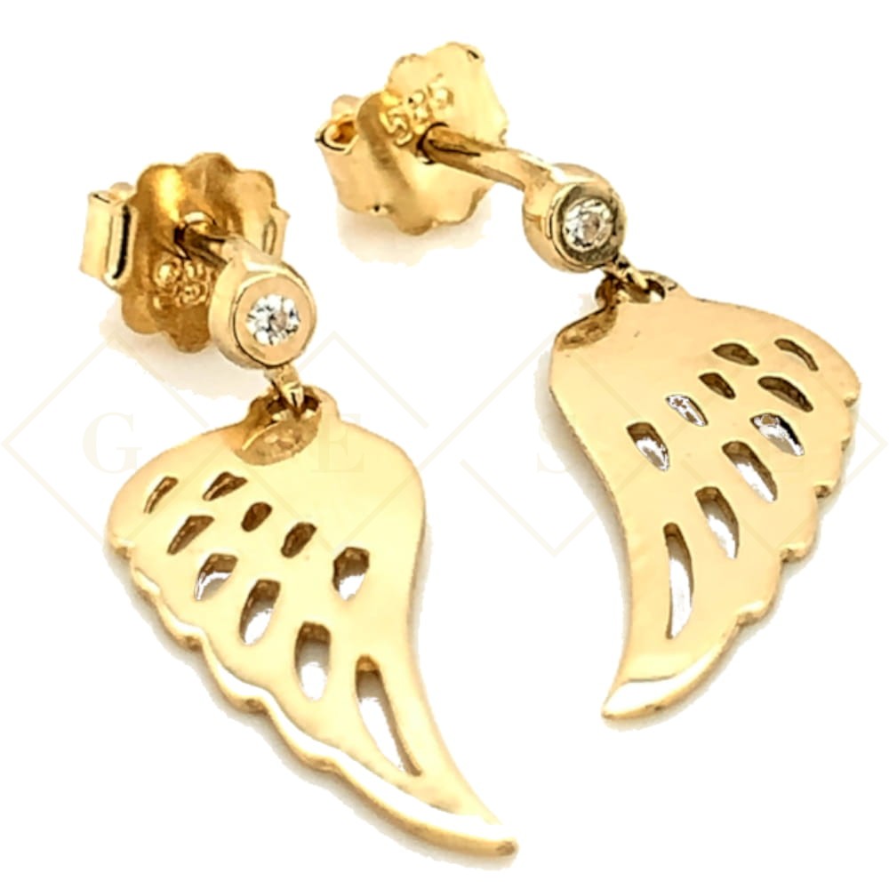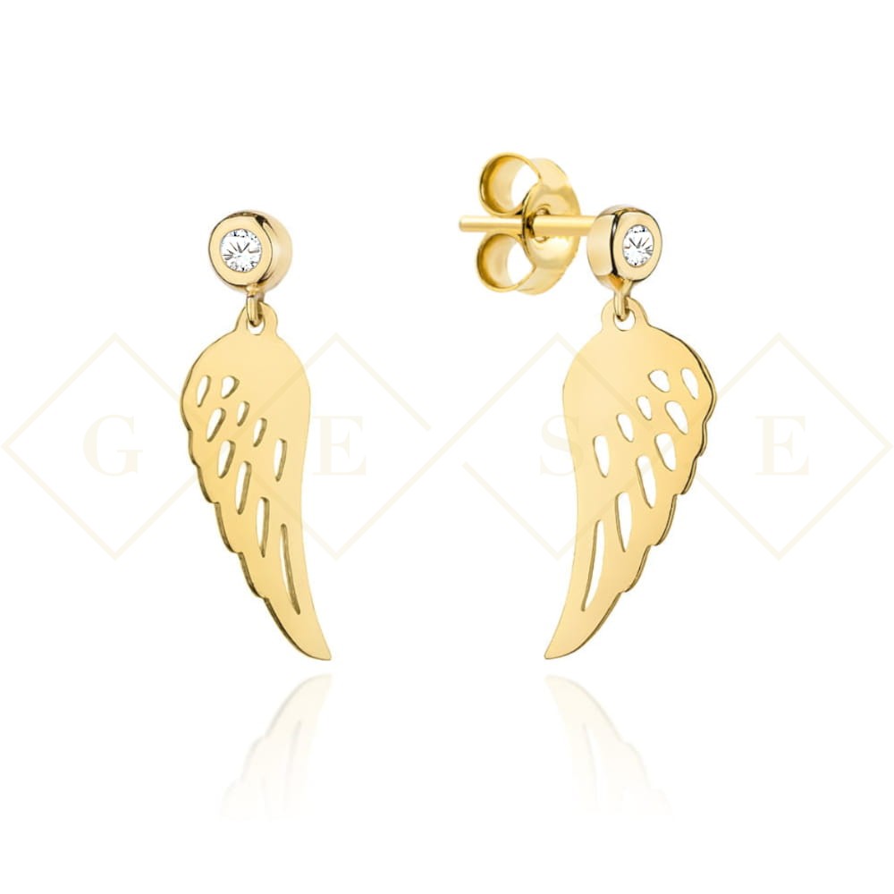 Kolczyki skrzydła Anioła z małą cyrkonią wiszące