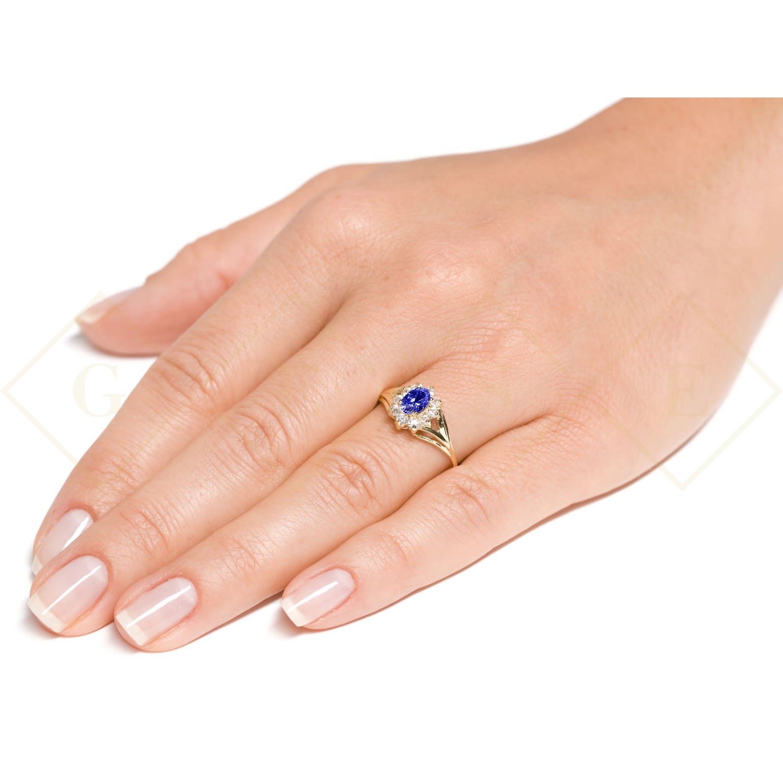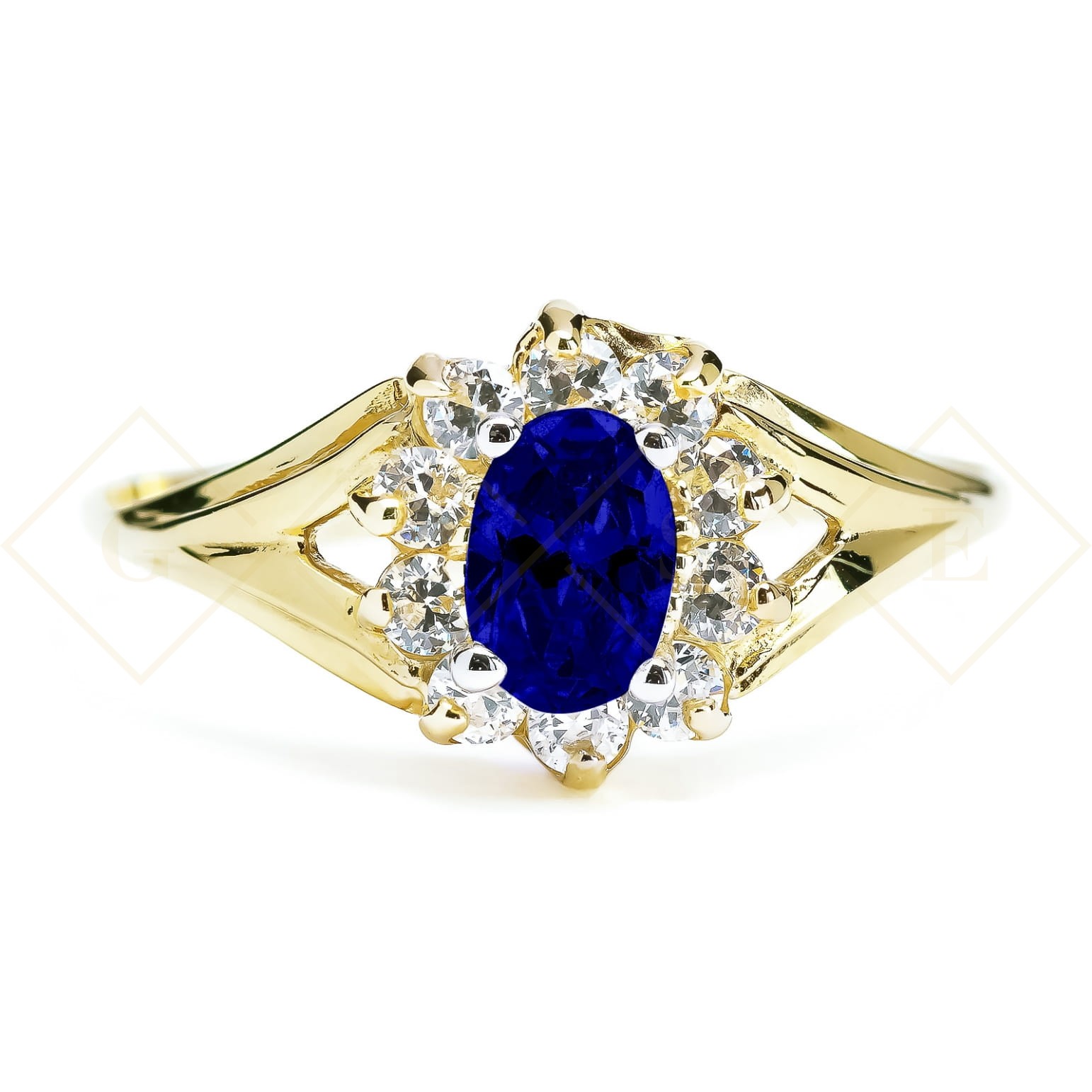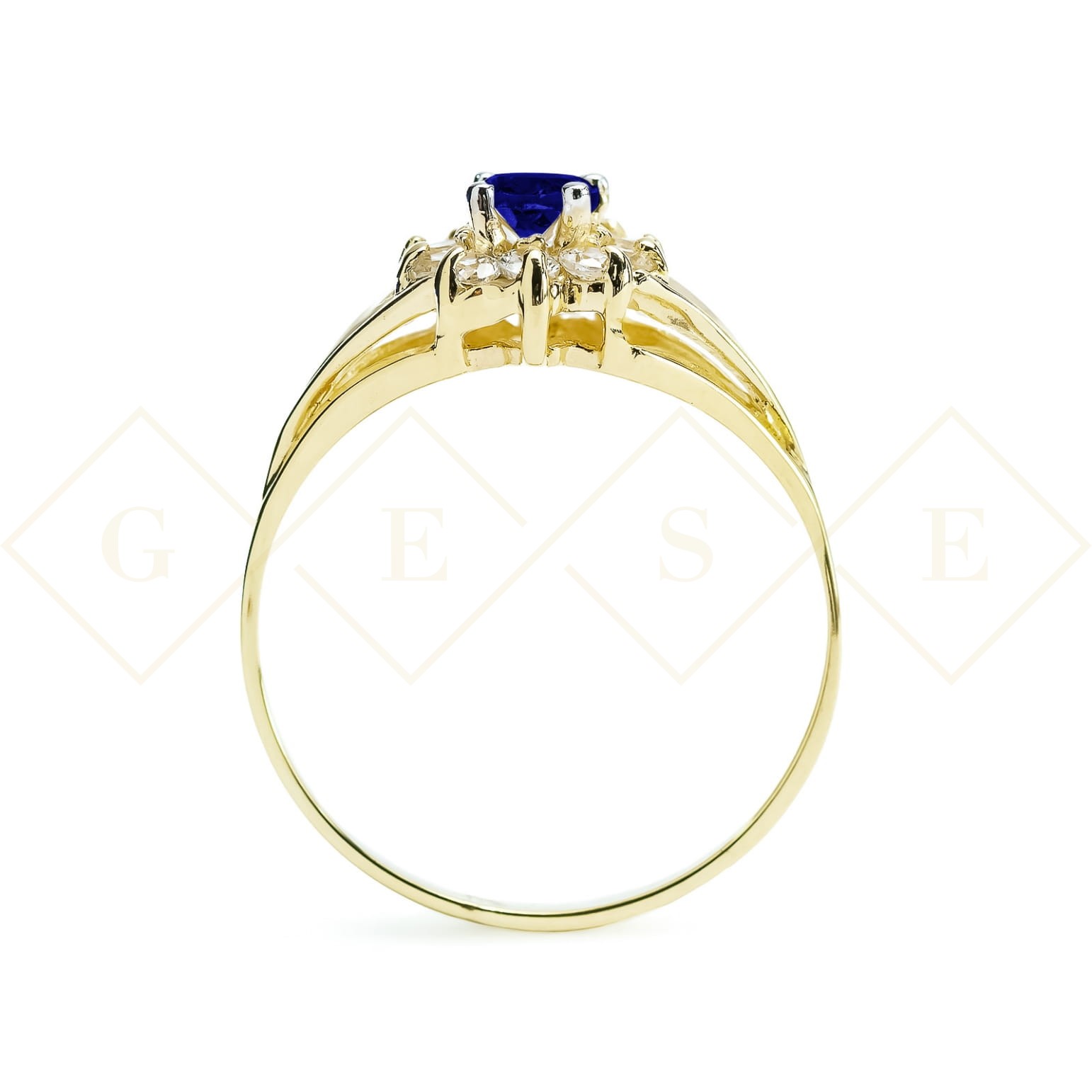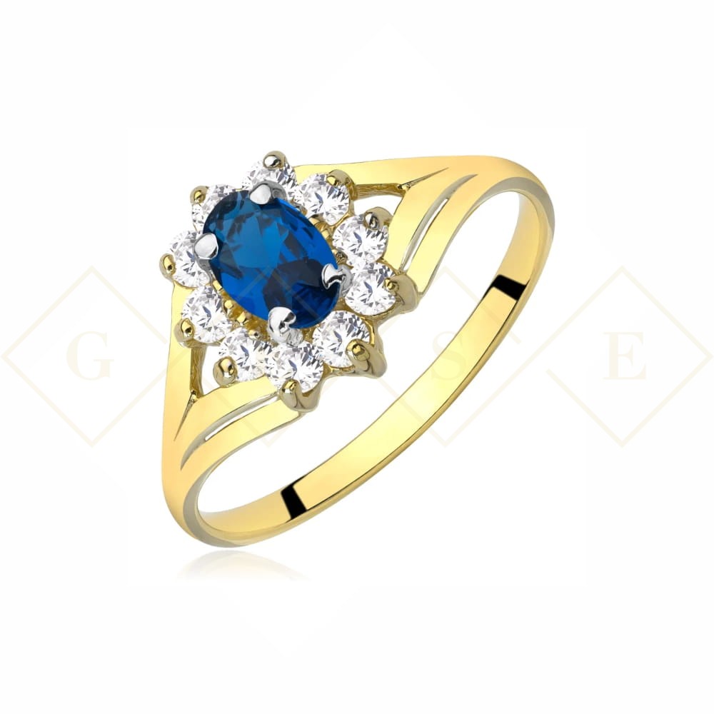 Modny Złoty pierścionek z cyrkoniami Markiza niebieski
