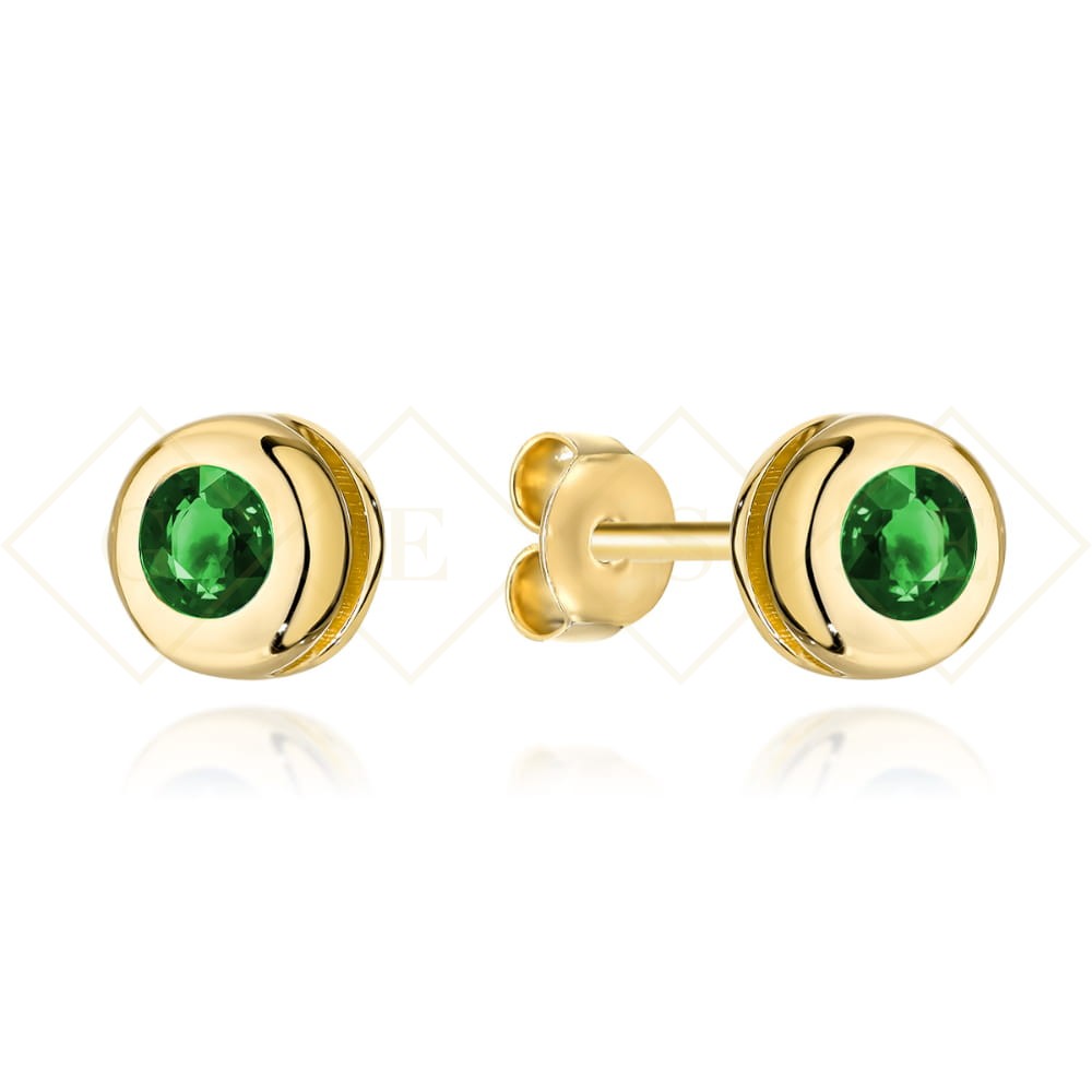Gold earrings with a green stone surrounded by gold