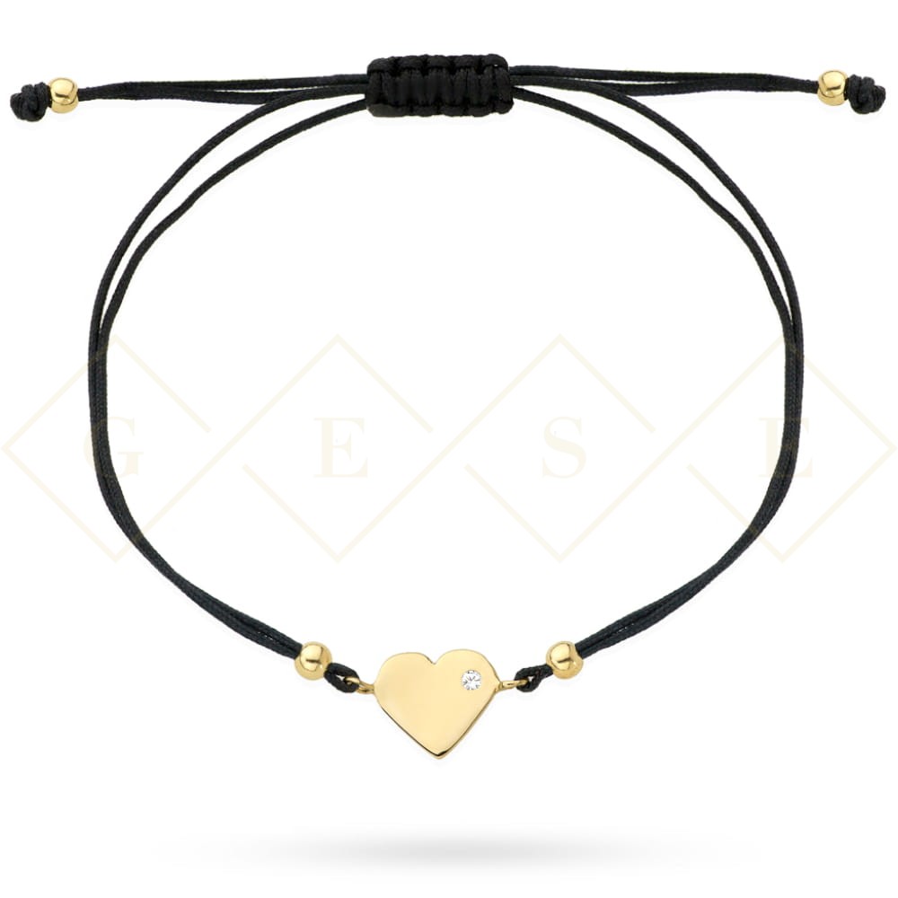 Gold heart bracelet with zircon on a black string
