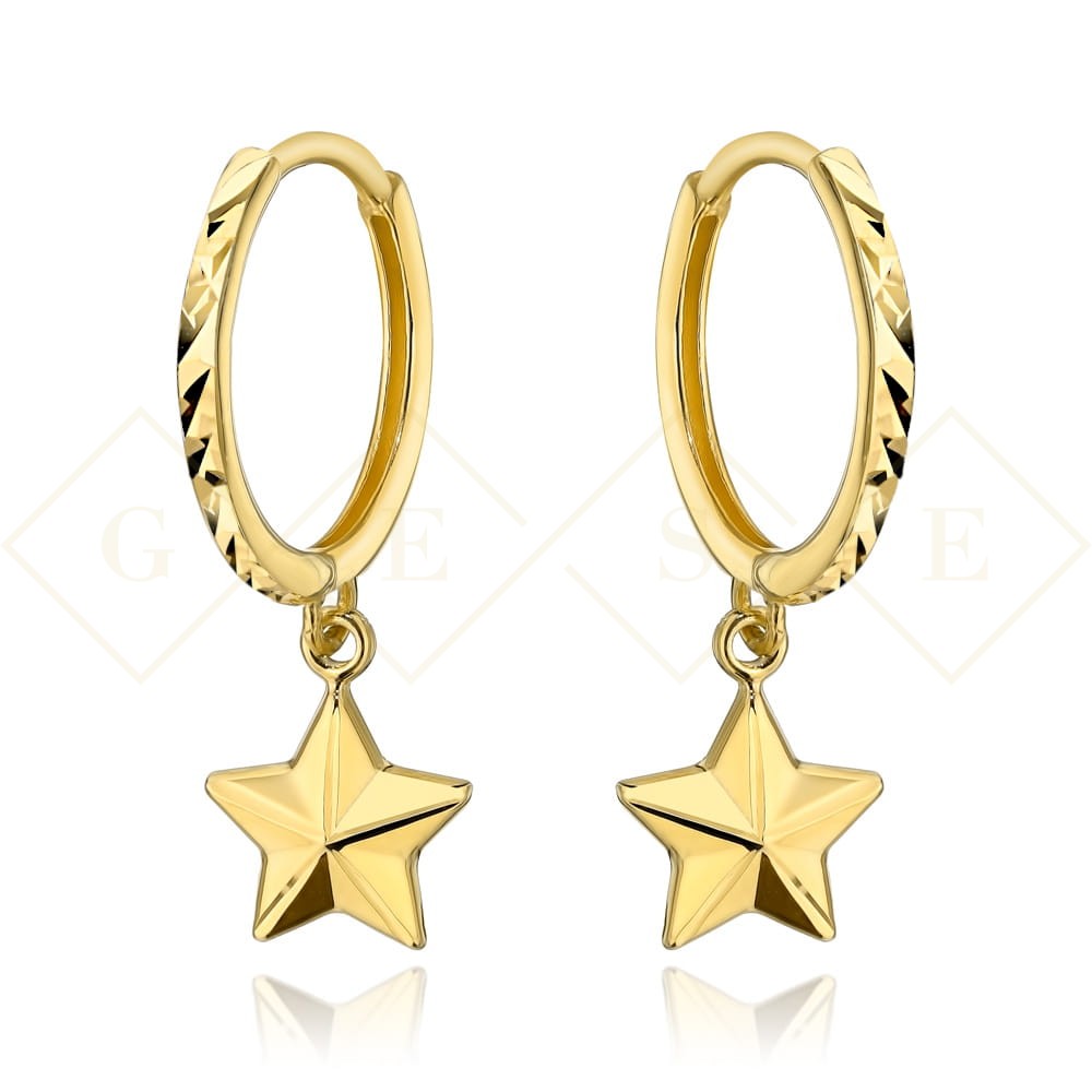 Gold hoop earrings with a star
