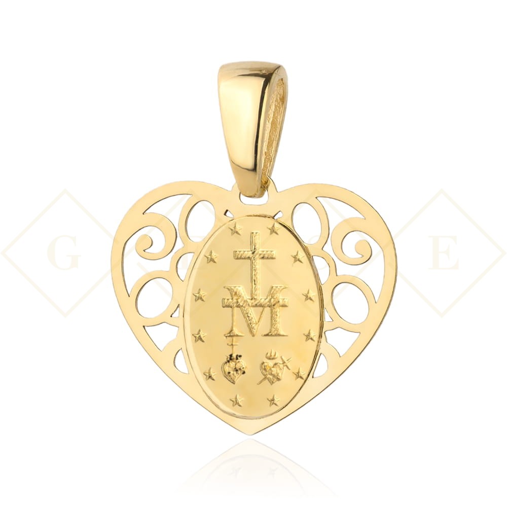 Gold miraculous medallion in an openwork heart. 375