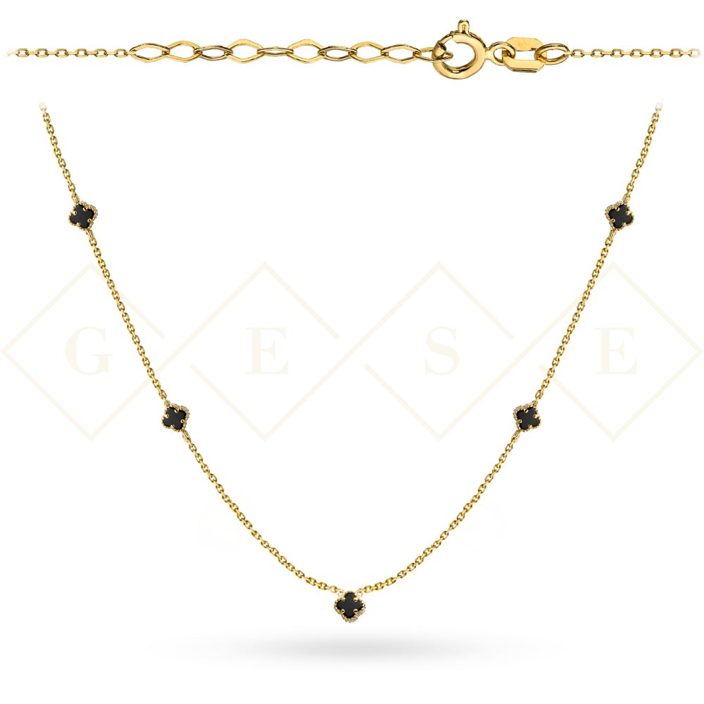 Gold necklace with small black clovers