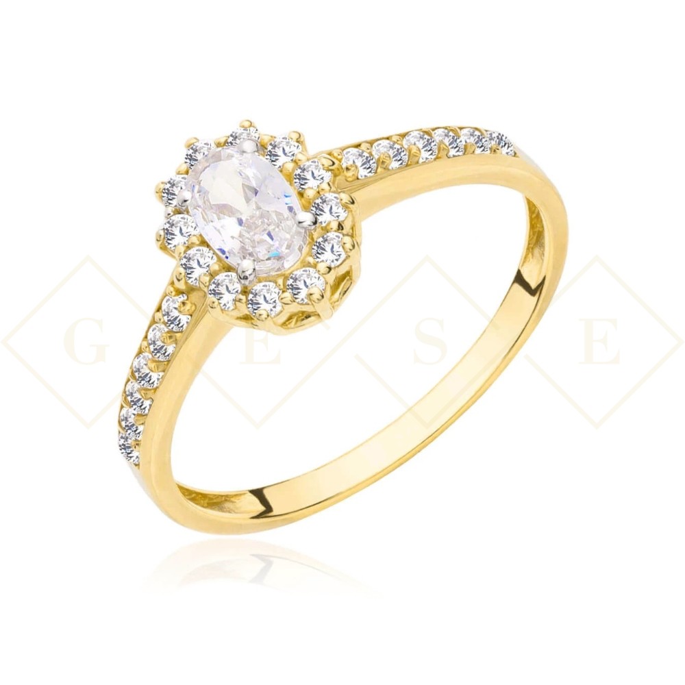 Gold ring, white stone, cubic zirconia. 333