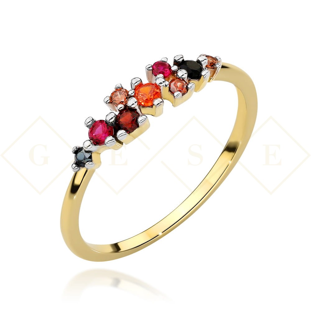Precisely made 585 gold ring with colored stones in shades of amber.