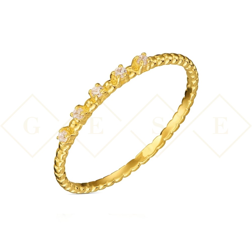 Gold ring with white balls and stones. 333