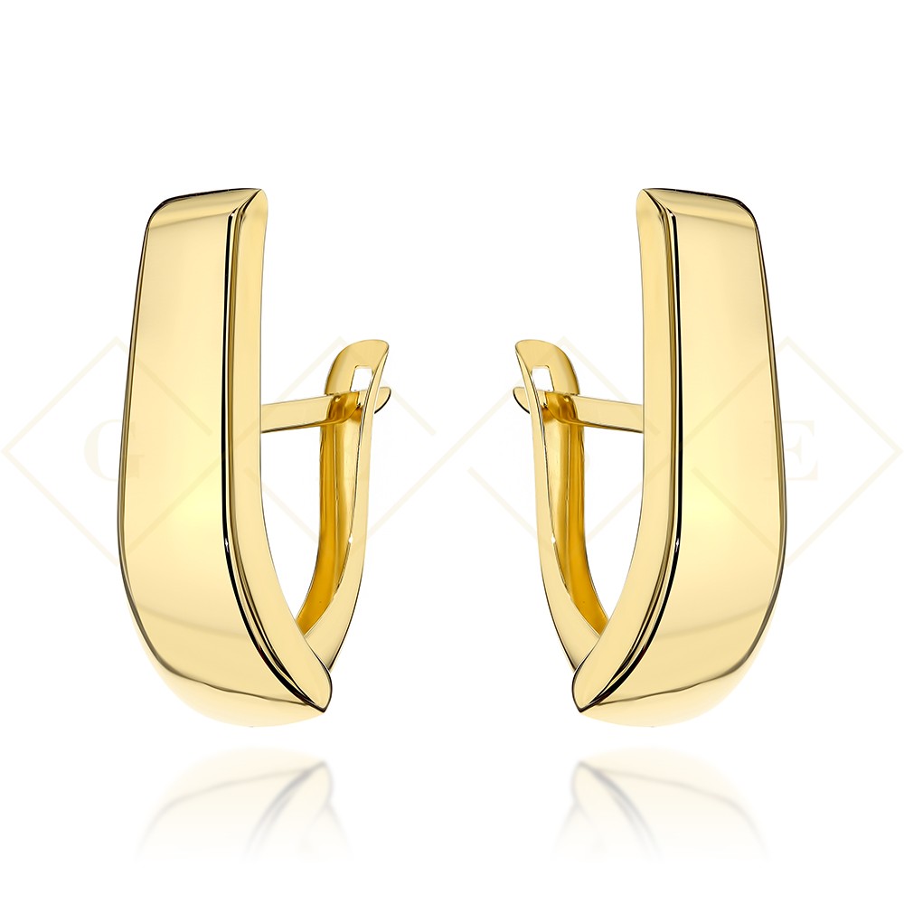 Gold stud earrings, elongated, plain, 585