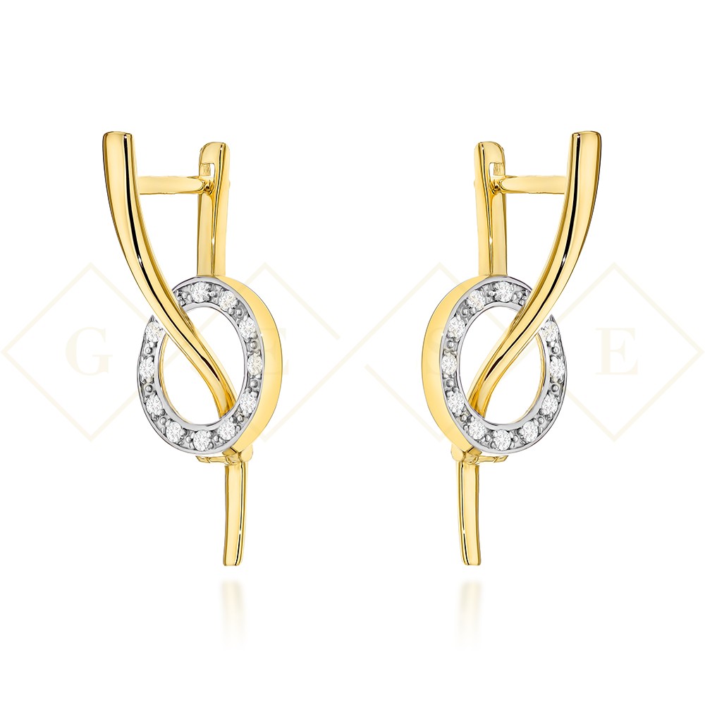 Gold wave and circle earrings with zircons