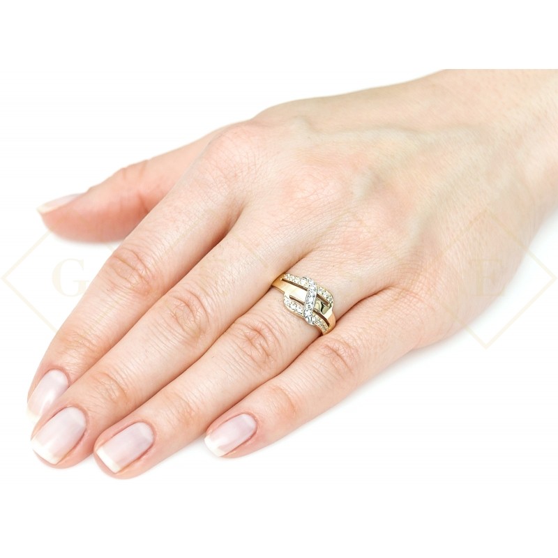Trendy gold ring 333 fineness cubic zirconia interwoven 1.34