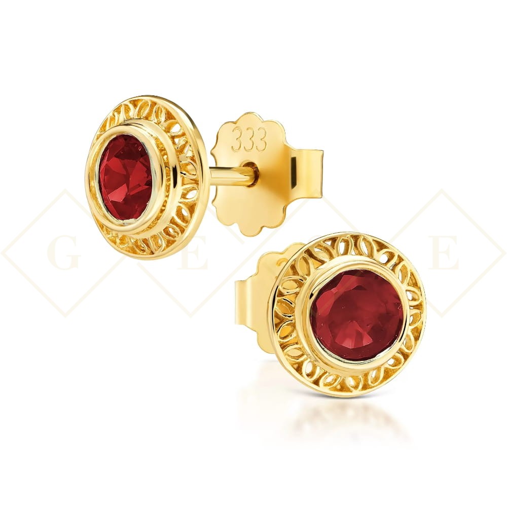 Ażurowe złote kolczyki czerwona cyrkonia pr. 333 1.815cscz