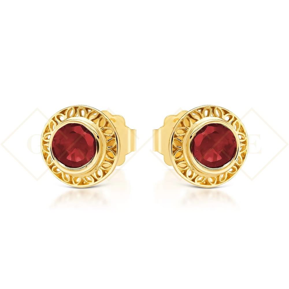Ażurowe złote kolczyki czerwona cyrkonia pr. 333