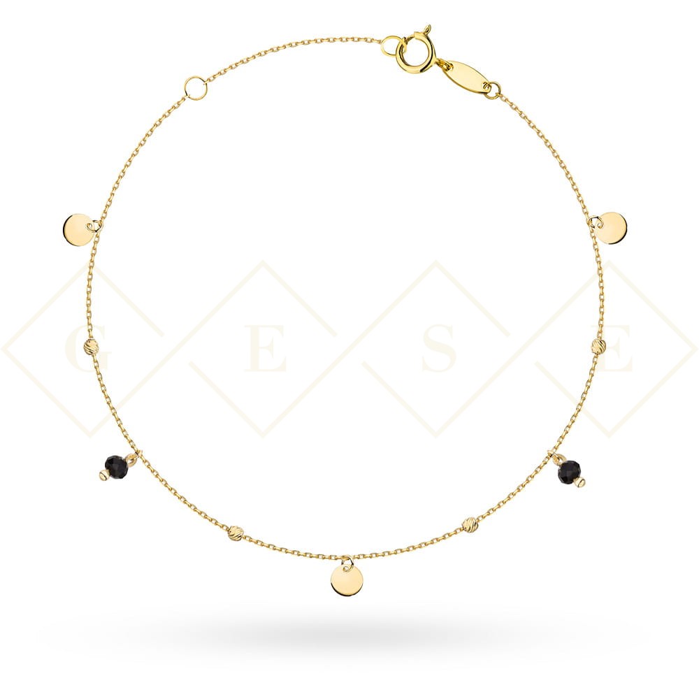 Bransoletka złota diamentowane kulki, pełne kółka i czarne kamienie