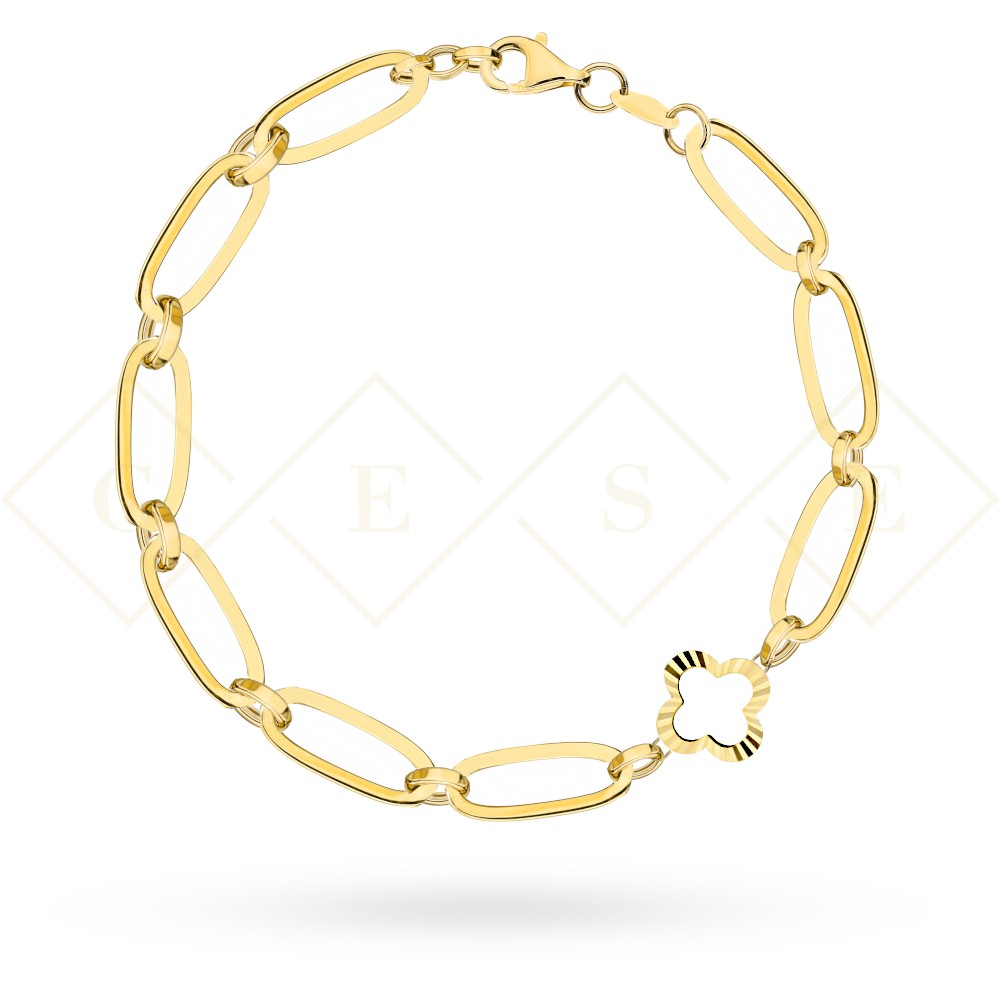 Bransoletka złota długie ogniwa i diamentowana koniczynka