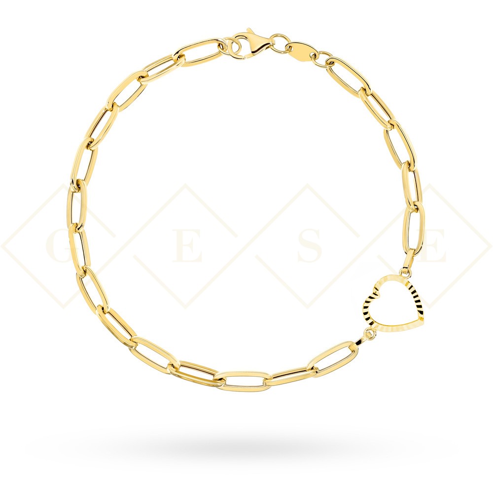 Bransoletka złota długie ogniwa i diamentowane serce