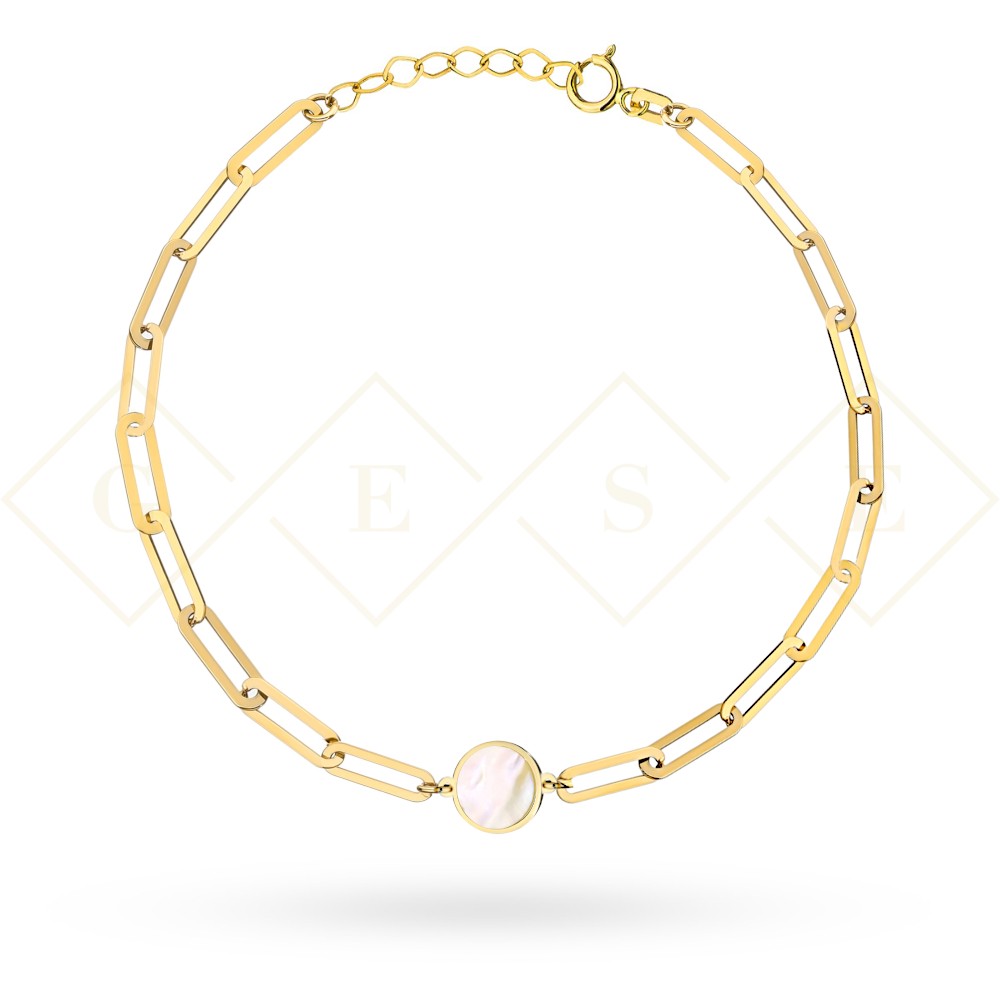 Bransoletka złota długie ogniwa i kółko z masą perłową