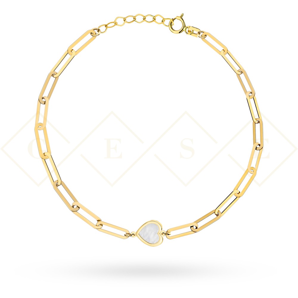 Bransoletka złota długie ogniwa i serce z masą perłową