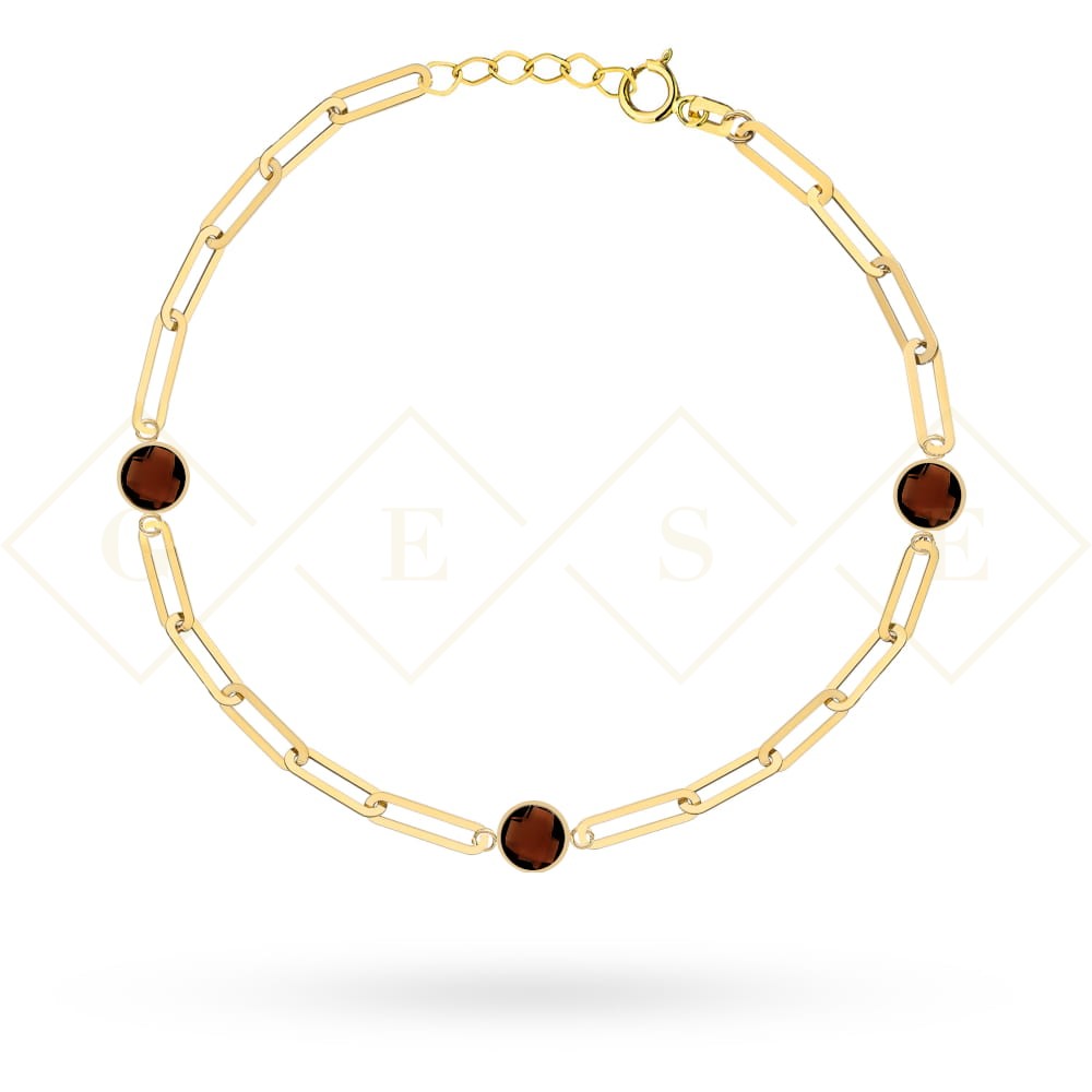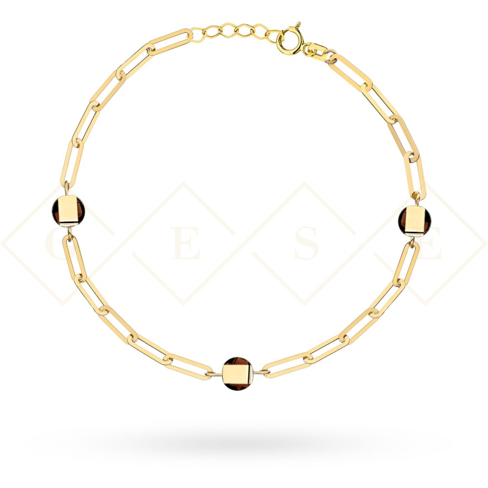 Bransoletka złota ogniwa i elementy z brązowego kwarcu