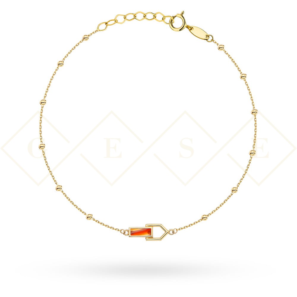 Precyzyjnie wykonana złota bransoletka z gładkimi kulkami oraz naturalnym kamieniem CORNELIAN próby 585.