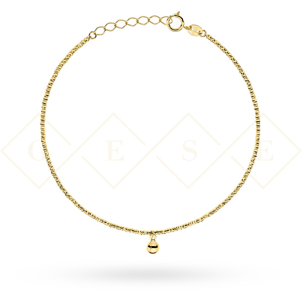 Bransoletka złota złożona z diamentowanych kuleczek z wiszącą gładką kulką