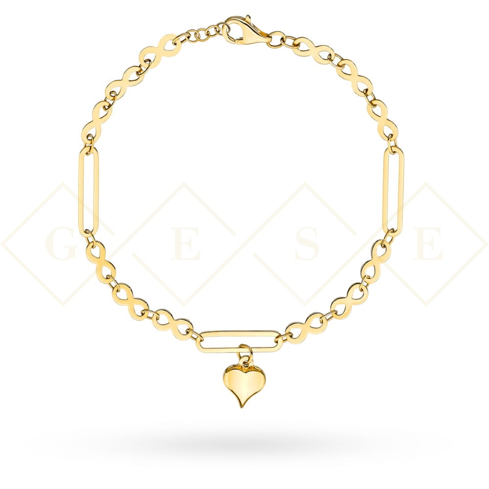 Bransoletka złota znaki nieskończoności, owale i serce