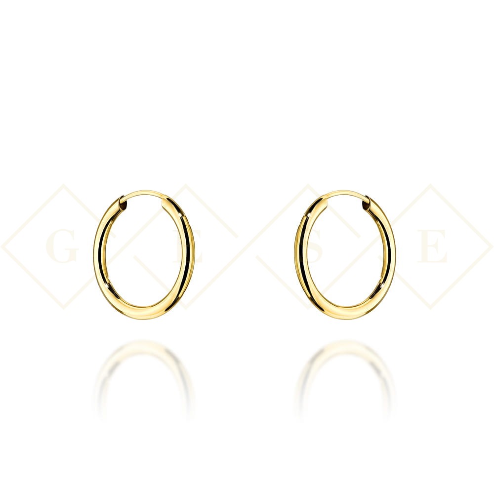 Precyzyjnie wykonane złote kolczyki koła super lekkie próby 585. Doskonałe jako prezent na imieniny, ważny jubileusz ozdoba eleganckiej kreacji.