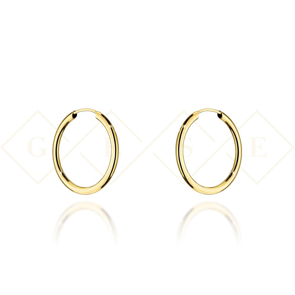 Precyzyjnie wykonane złote kolczyki koła super lekkie próby 585. Doskonałe jako prezent na imieniny, ważny jubileusz ozdoba eleganckiej kreacji.