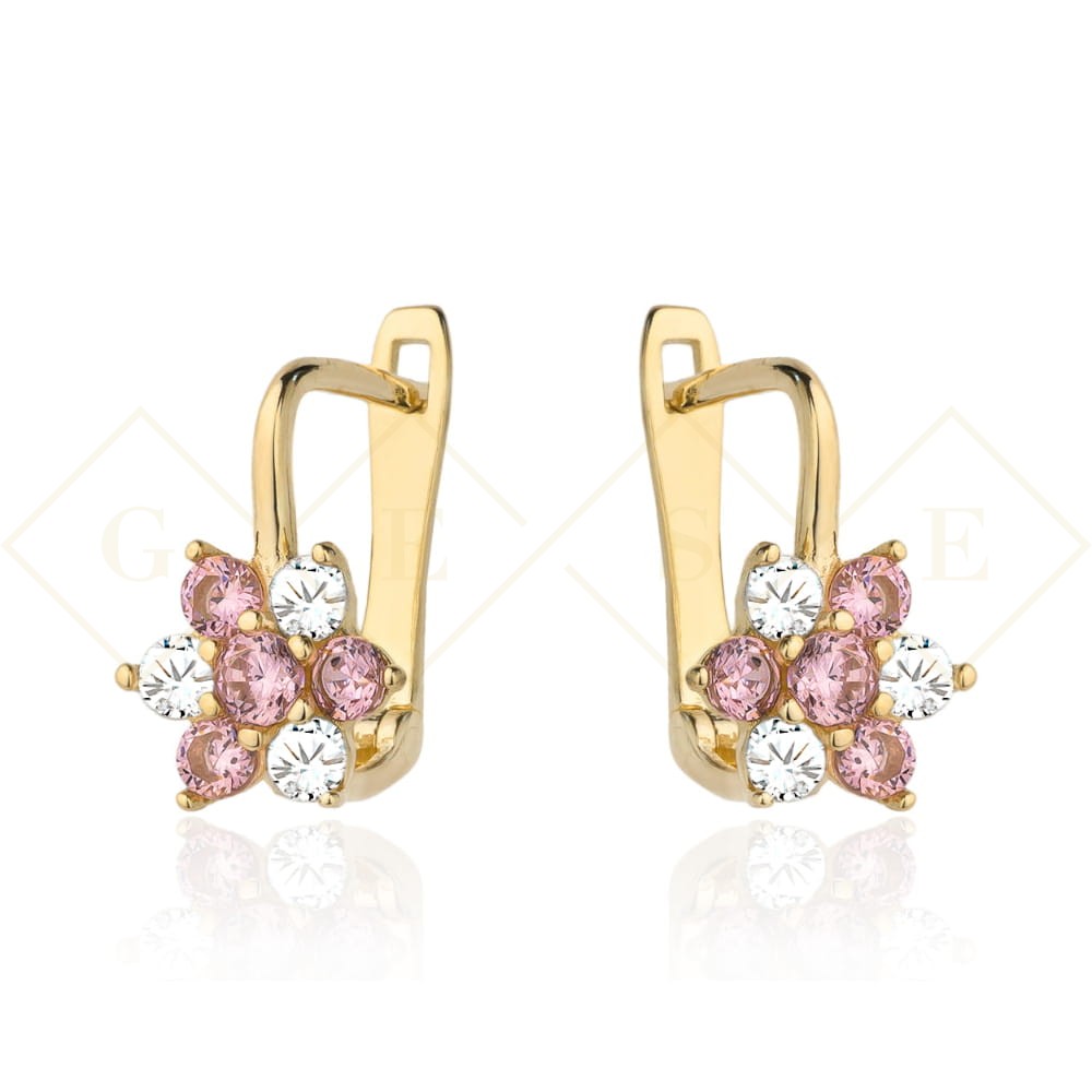 Kolczyki kwiatki z białą i różową cyrkonią