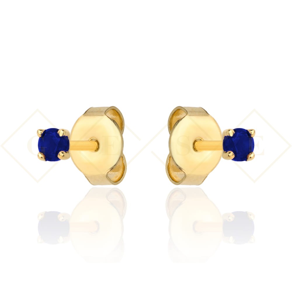 Kolczyki złote centralna niebieska cyrkonia