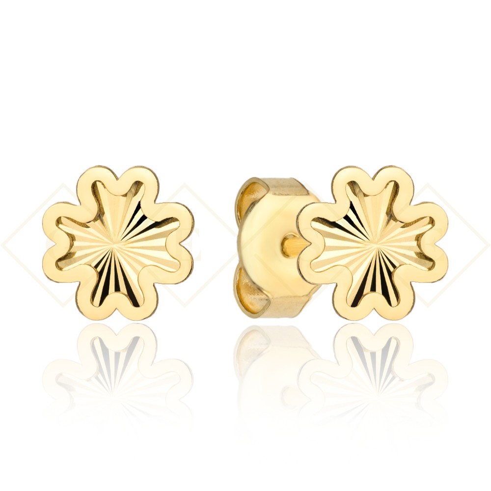 Kolczyki złote diamentowane koniczynki w gładkiej oprawie pr. 375
