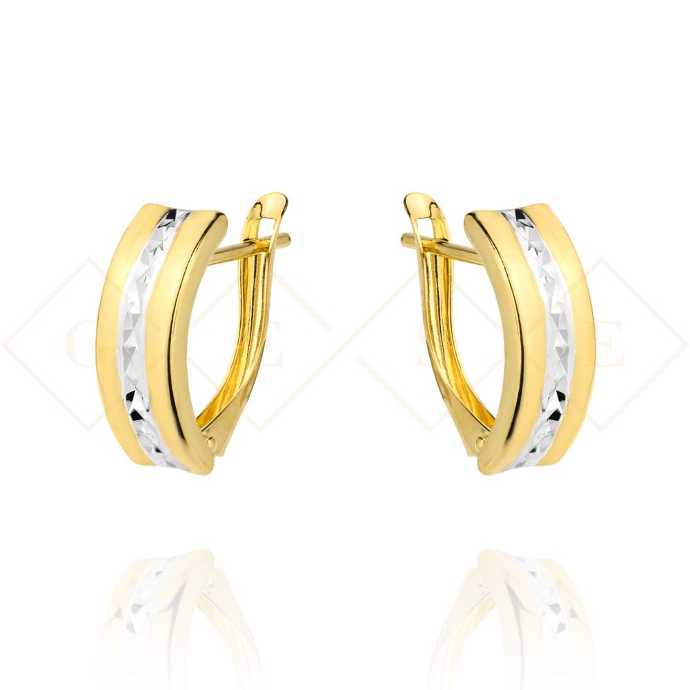 Kolczyki złote diamentowane na środku dwa kolory złota