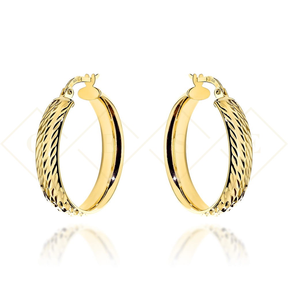 Precyzyjnie wykonane złote kolczyki koła zdobione diamentowaniem próby 585.