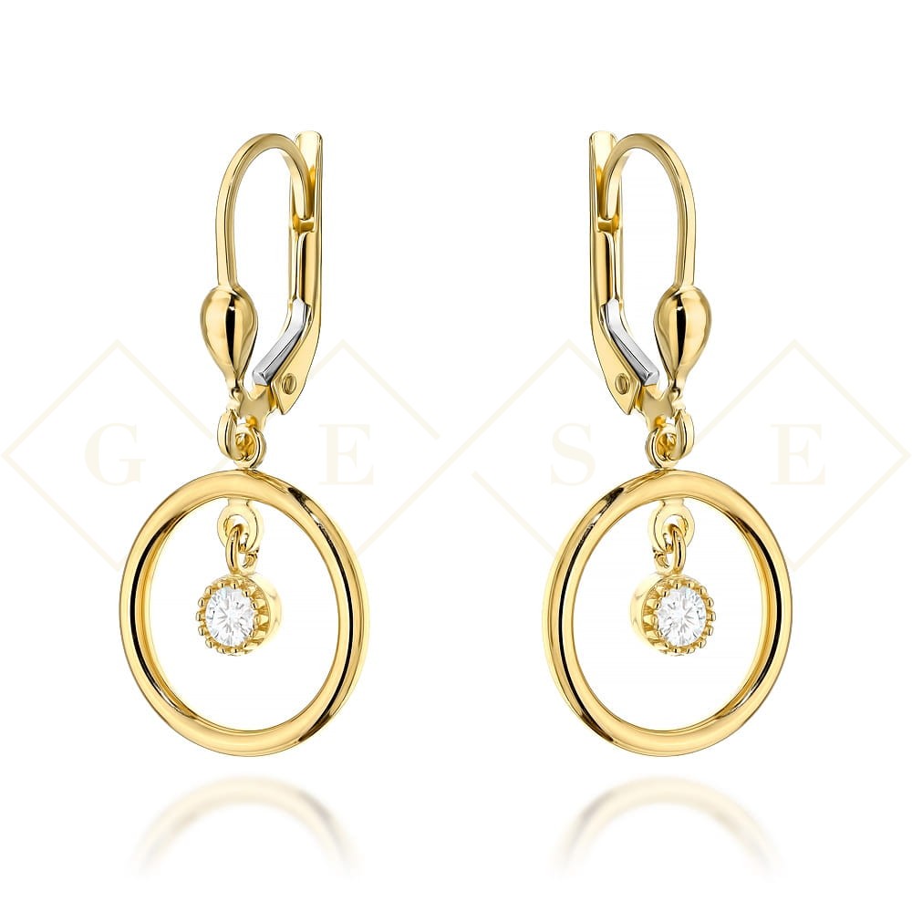 Kolczyki złote kółeczka z cyrkonią na angielskim zapięciu
