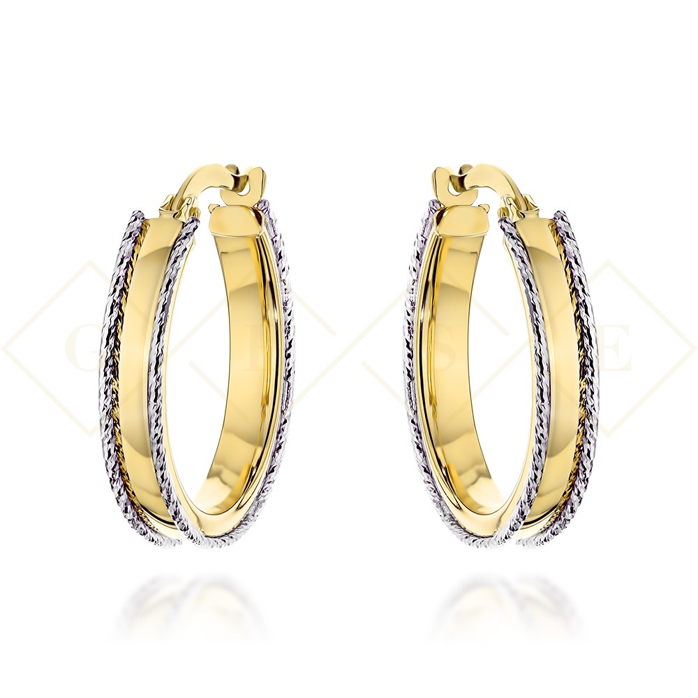 Kolczyki złote kółka zdobione na brzegach w dwóch kolorach złota
