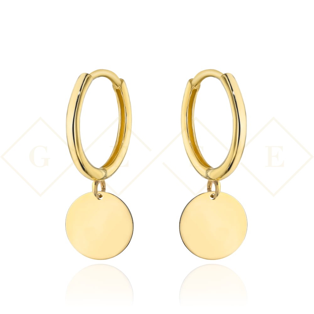 Kolczyki złote kółko z wiszącym pełnym kołem
