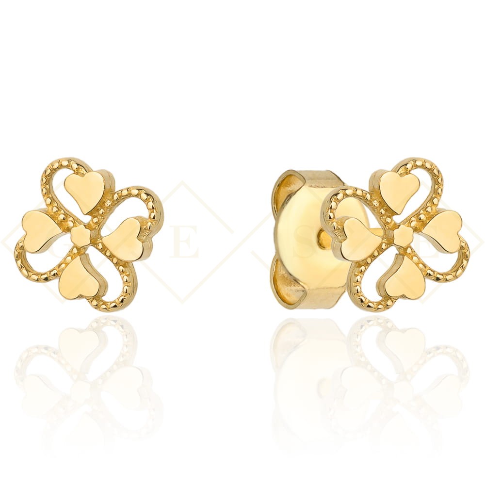 Kolczyki złote koniczynki i serduszka