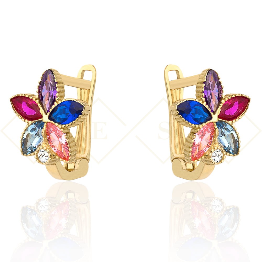 Kolczyki złote kwiatki z kolorowymi kamieniami