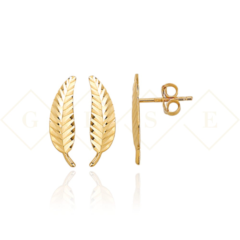 Precyzyjnie wykonane złote kolczyki próby 585. Piękne diamentowane listki. Doskonałe jako prezent na imieniny, ważny jubileusz ozdoba eleganckiej kreacji.