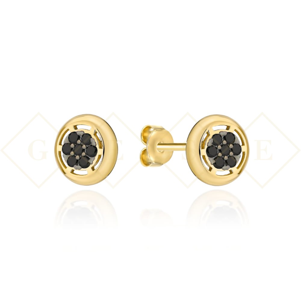 Kolczyki złote okrągłe i kółko z czarnych cyrkonii w środku