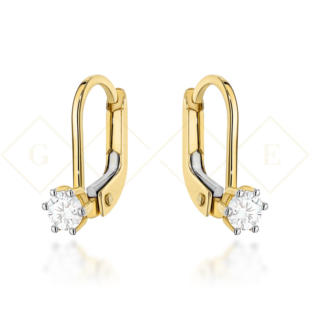 Kolczyki złote pojedyncza cyrkonia na angielskim zapięciu
