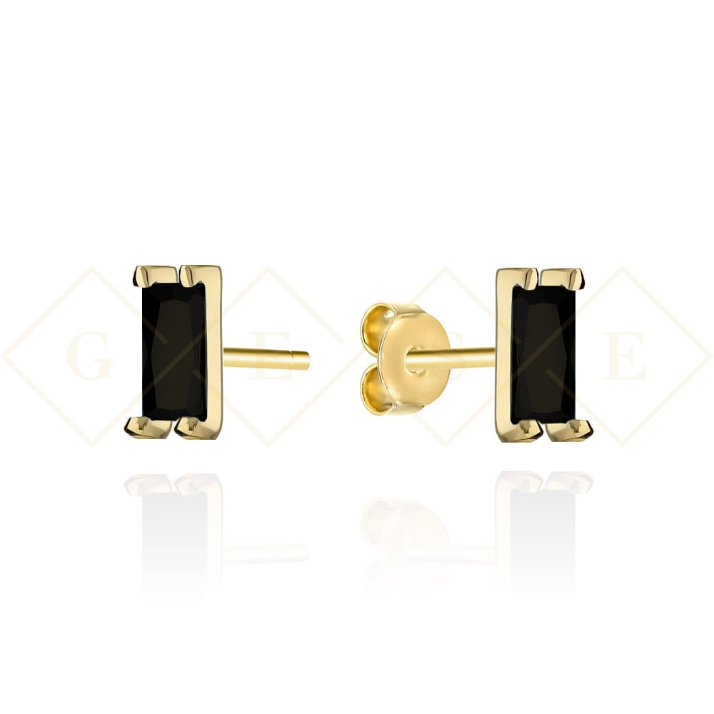 Kolczyki złote prostokąty z czarnym kamieniem na sztyfcie
