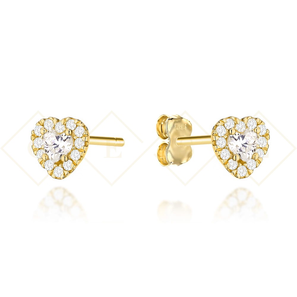 Kolczyki złote serduszka wysadzane cyrkoniami