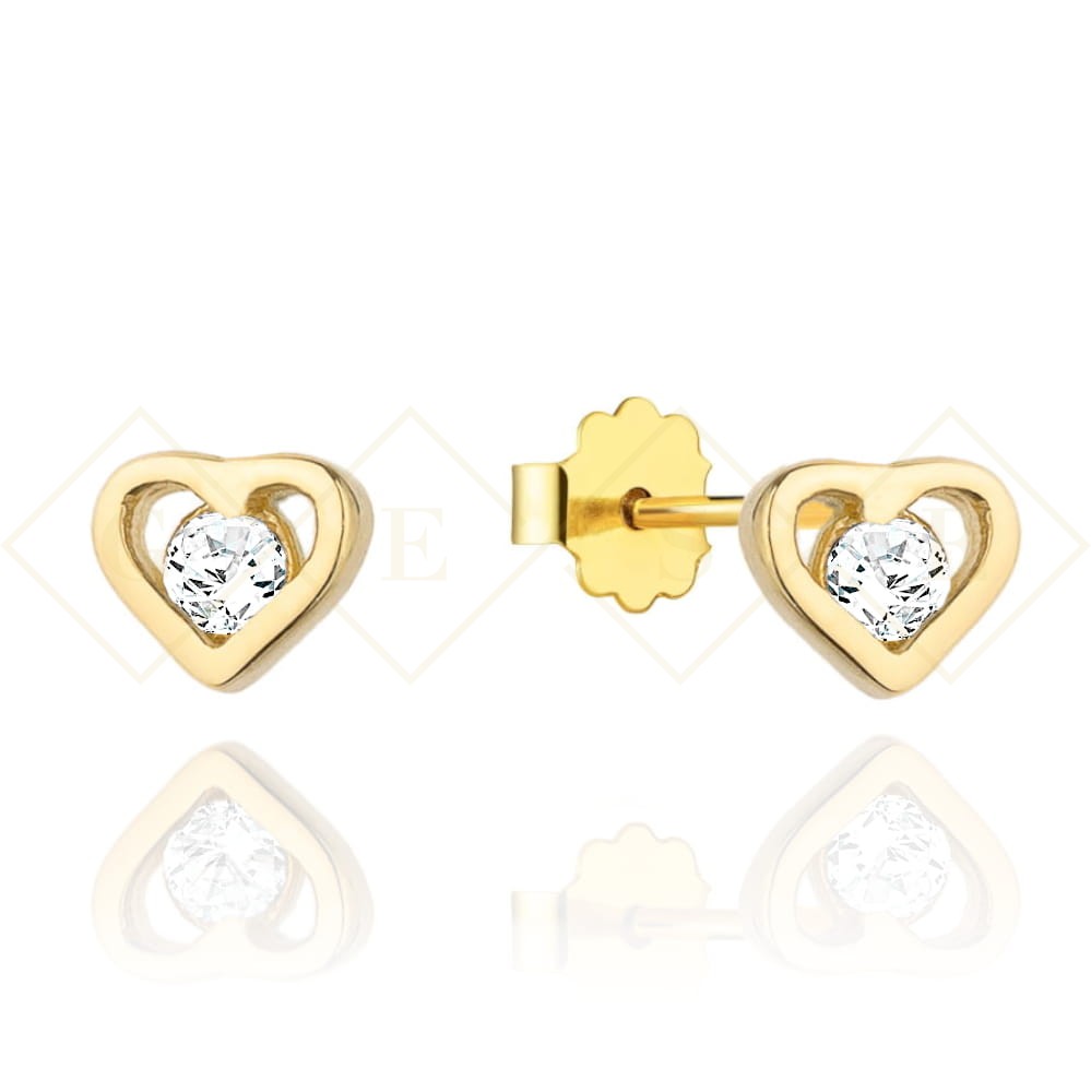 Kolczyki złote serduszka z kamyczkiem w środku na sztyfcie