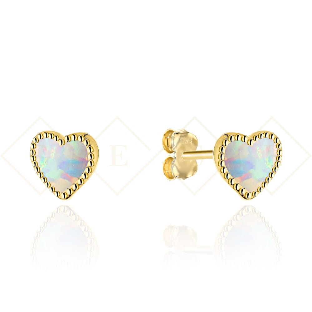 Kolczyki złote serduszka z opalem na sztyfcie
