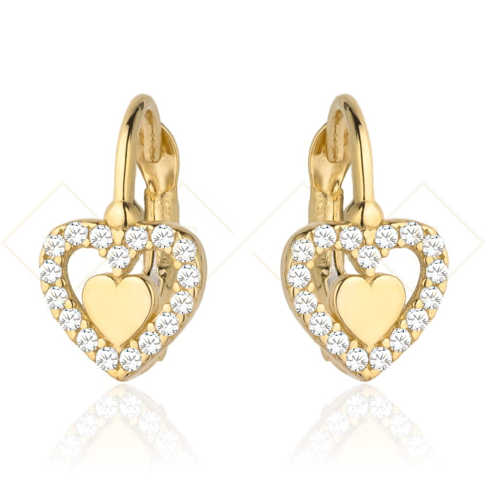 Kolczyki złote serduszko w sercu wysadzanym cyrkoniami