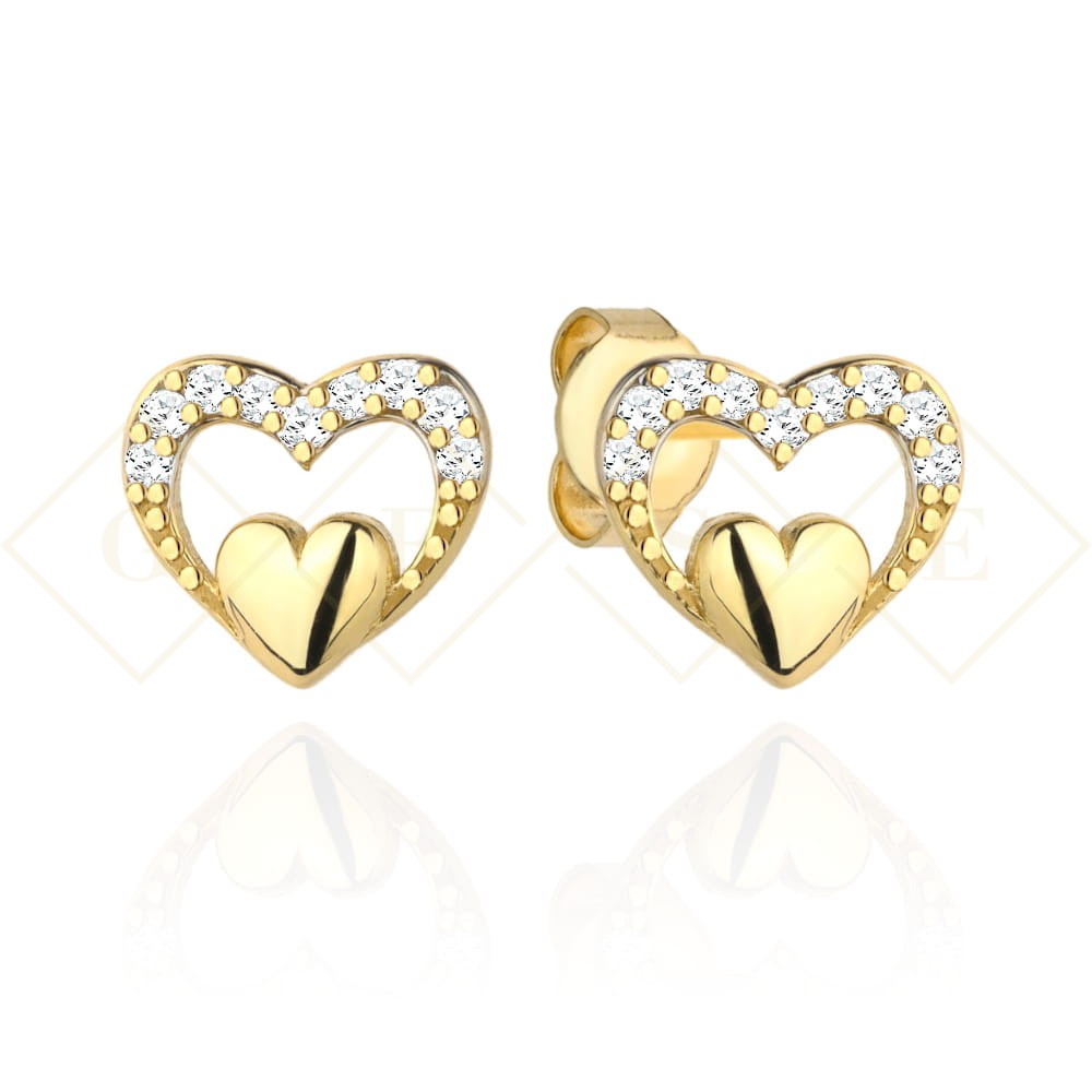 Kolczyki złote serduszko w sercu z cyrkonii