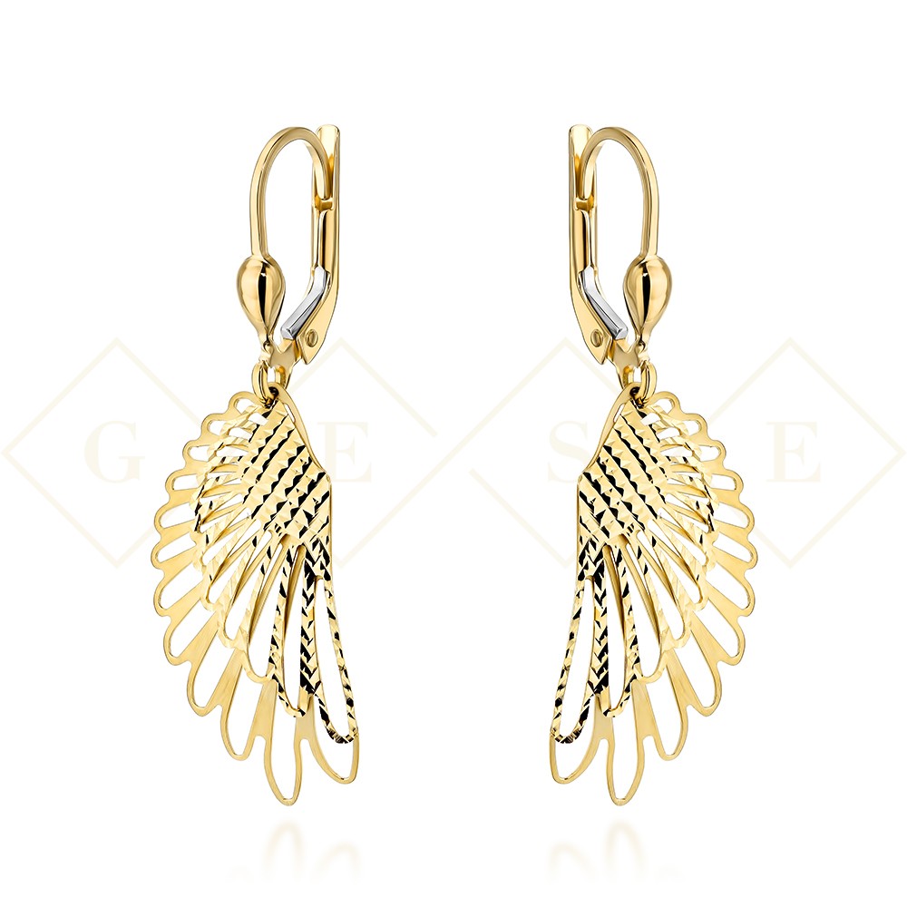Kolczyki złote skrzydła zdobione diamentowaniem