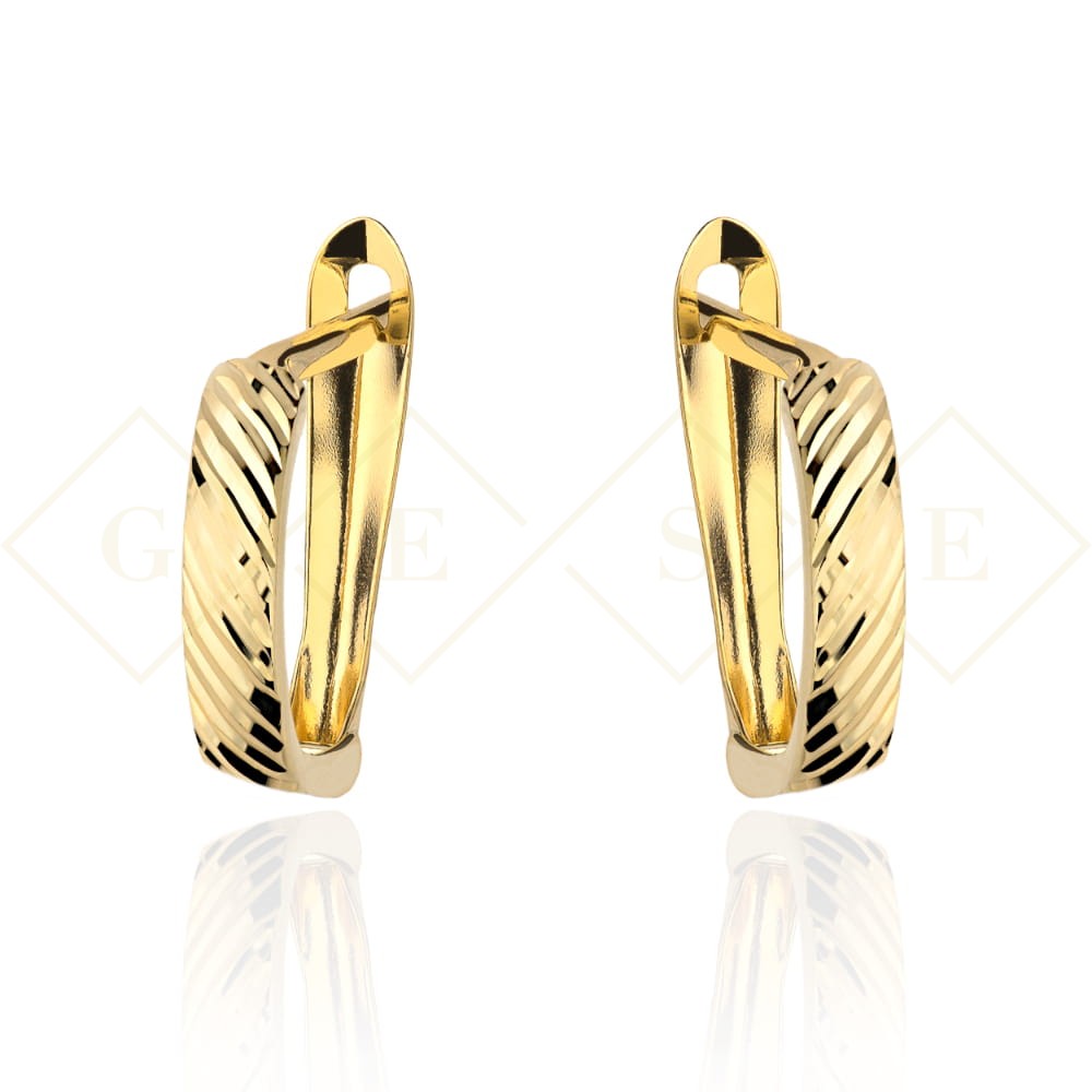 Precyzyjnie wykonane złote kolczyki próby 585. Doskonałe na prezent na dzień matki, imieniny, bierzmowanie, ważny jubileusz.