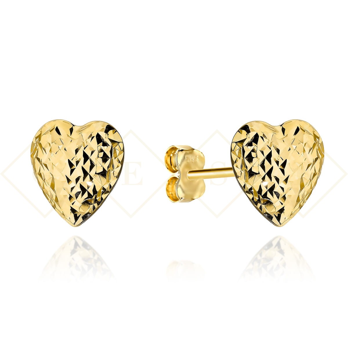 Precyzyjnie wykonane złote kolczyki super lekkie próby 585 - serduszka z zamkniętym tyłem.