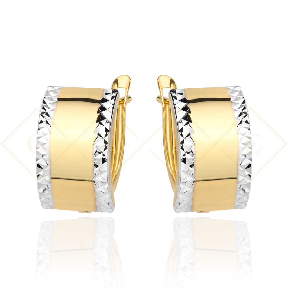 Kolczyki złote szerokie diamentowane na obu brzegach dwa kolory złota