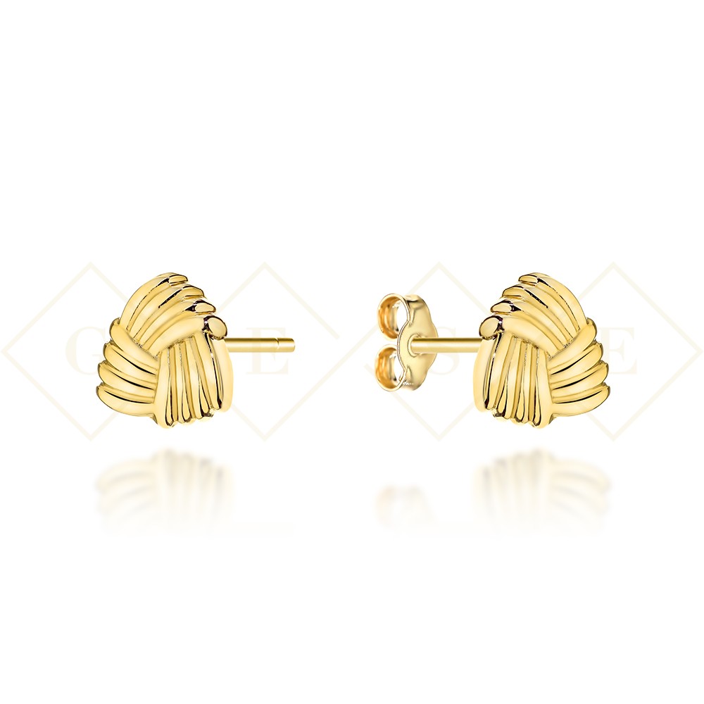 Kolczyki złote trójkątne zaplatane na sztyfcie
